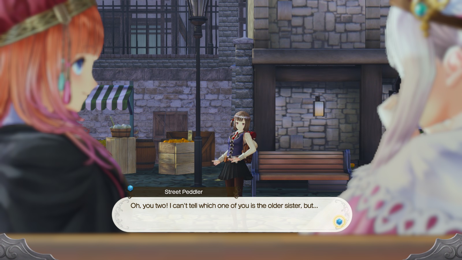 Anywho, Lulua goes around, makes some friends (some in high places), and goes on her adventure. She gets the help of some mysterious book, that only she can read, which gives her ideas to solve whatever problem is in front of her. Of course there’s some work involved (it’s a game, after all), but the book is a great catalyst to her alchemy skill. Also, there are weird times where it seems she might chicken out of some thing, but then *RECORD SCRATCH* she chooses adventure instead. There’s definitely something to this, but where I’m at (according to GameFAQ’s I’m 1/2-2/3 through the story) it’s a mystery. Might have something to do with time travel schenanigans – there’s one part where Lulua is regretting something she’s done, wishing she could go back and change it, but she’s told in no uncertain terms that changing the past is impossible; that in itself is a pretty common heroic growth plot point, but the way it’s explained (that trying to correct the past merely creates another reality – good for that reality, but still sucks for you) was so jarring that it must be a plot point.