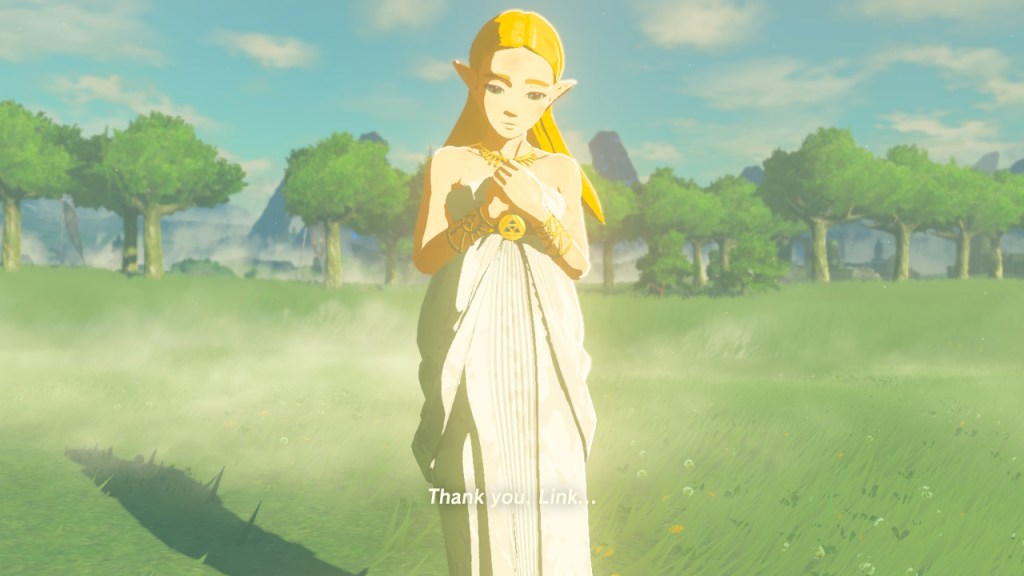 Personally, I am a big fan of this structure. Some folks aren’t – they want their bounds, they want that narrative push. They want that constant feed of story. This game isn’t that. You pick up bits and pieces of the story as you go. Pretty much all you are forced to learn is that 100 years ago Link and Zelda, along with four champions driving divine beasts (machines from an ancient civilization) failed to defeat Ganon, but the princess somehow managed to delay the final defeat until Link could recover – and now Link can fix things to defeat Ganon. That’s it – that’s the main story. Of course there’s a lot more to it, more to the world, but you actually have to go out and find it. Some people hate this, but I love it.